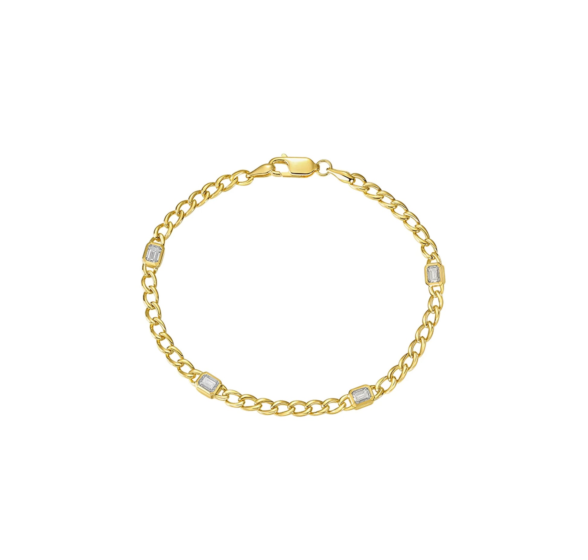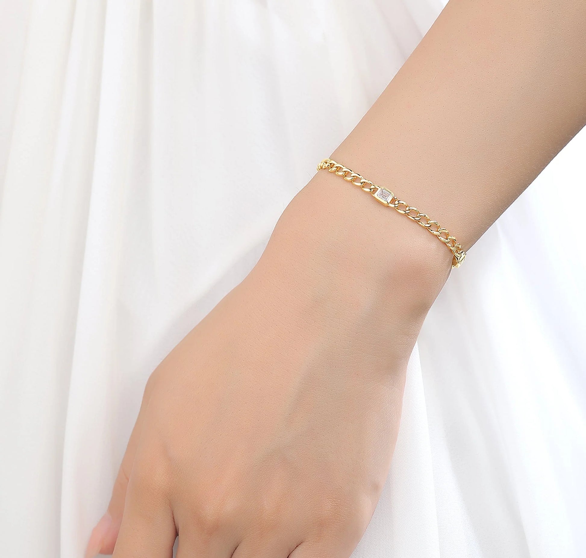 Showcasing a chic chain link style! These trendy gold chain link bracelets from the Luminous collection by Smiling Stones are lightweight and move gracefully with you. Perfect for adding a touch of elegance to your everyday look, they effortlessly blend style and comfort.